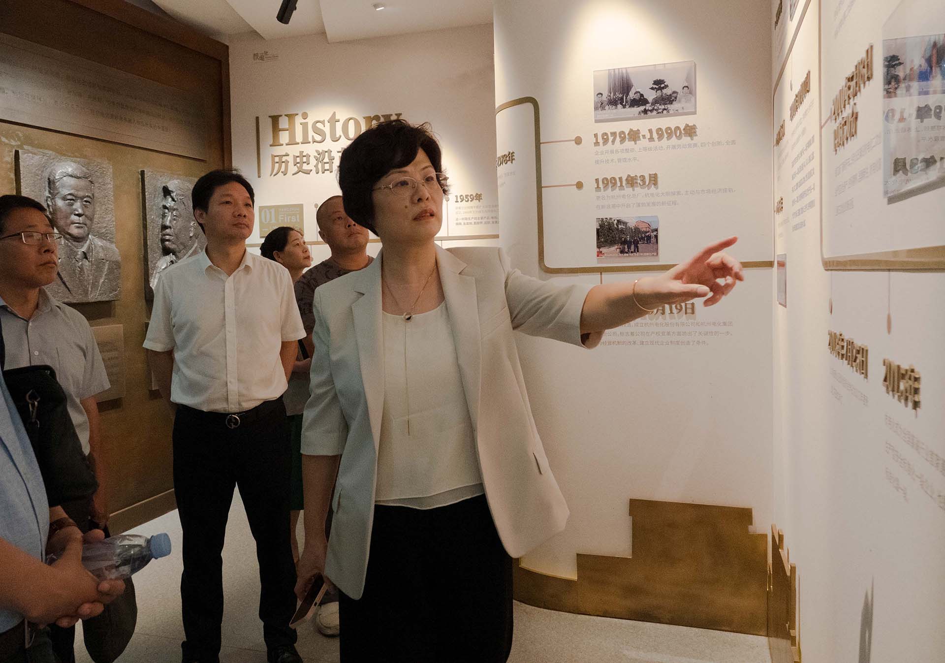 在蔣慧兒的帶領下,與會人員首先來到新投運的中控室,詳細了解基礎建設、設施設備和系統(tǒng)功能等基本情況,認真觀摩現(xiàn)場工作人員生產(chǎn)調度,并通過中央大屏觀看人員定位系統(tǒng)實時運行動態(tài),直觀感受了數(shù)字賦能推動企業(yè)高質量發(fā)展的生動實踐。在廠史館,蔣慧兒向大家介紹了“兩次搬遷、三次創(chuàng)業(yè)”的企業(yè)發(fā)展史、“一個基礎、五個支柱”的企業(yè)發(fā)展板塊和以“讓化工裝置在綠色園林中運行”為主要價值追求的企業(yè)文化,讓大家領略了一座歷經(jīng)87年品牌沉淀的老基礎化工企業(yè)所散發(fā)出的勃勃生機。