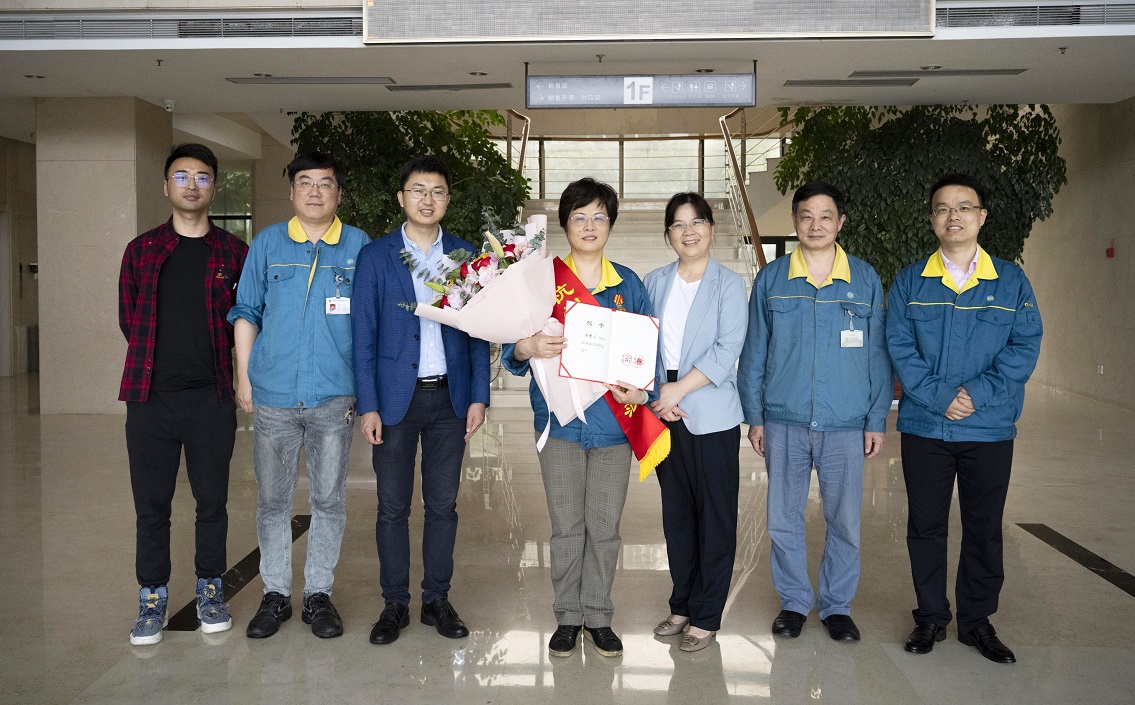 26日下午,杭州市工業(yè)工會(huì)魏萍主任、周杰副主任專程趕赴杭電化,為蔣慧兒頒發(fā)榮譽(yù)證書(shū)、獎(jiǎng)?wù)?,并送上鮮花和節(jié)日祝福。